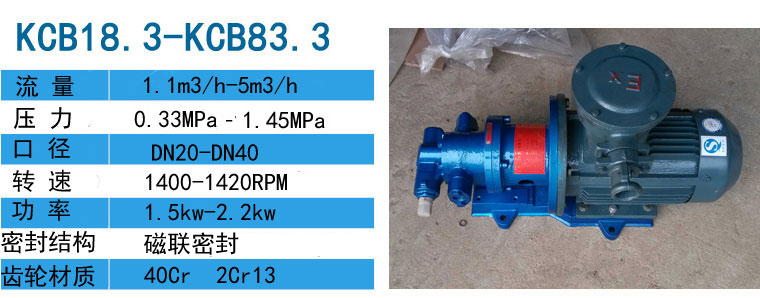 KCB-18.3 | 1.1 | 18.3 | 1400 | 1.45 | 5 | 44 | 1.5 | Y90L-4 |